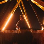 ✔️ Cabina para DJ y músicos integrada al entorno con materiales naturales.