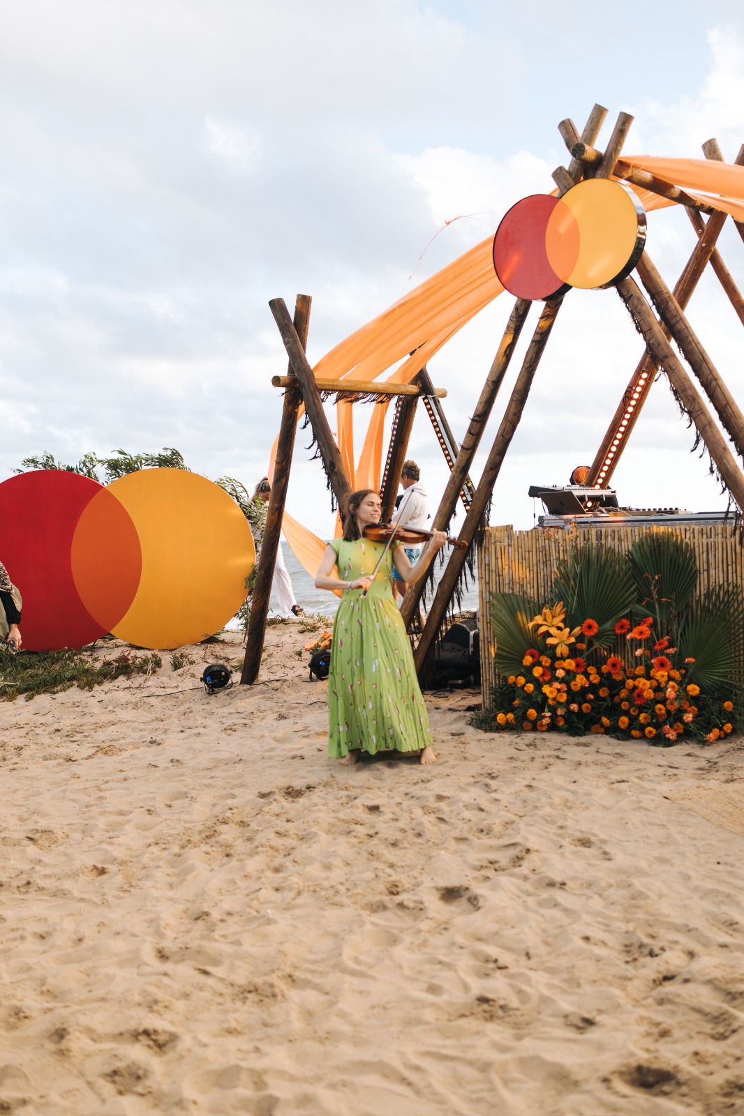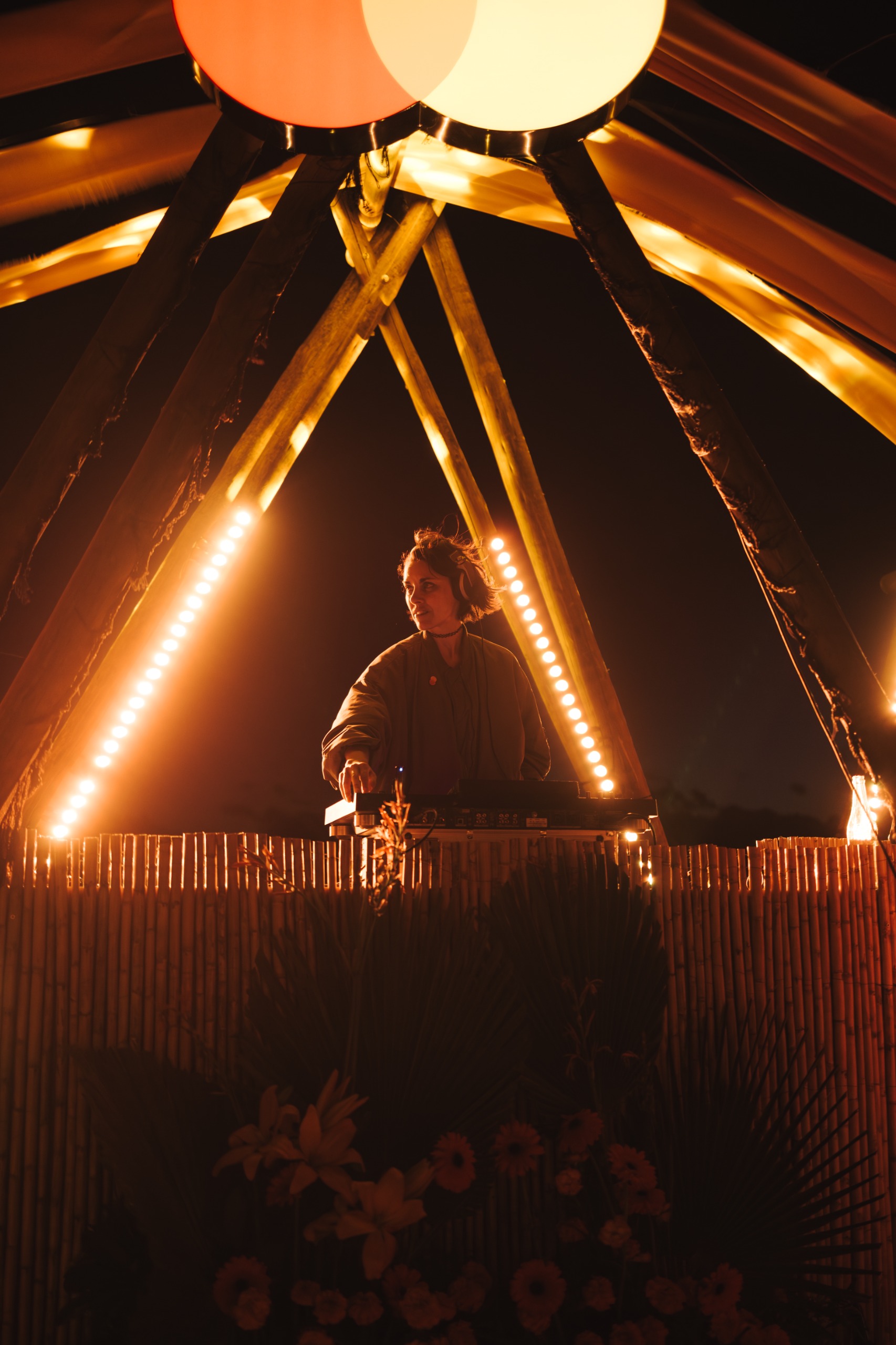 ✔️ Cabina para DJ y músicos integrada al entorno con materiales naturales.